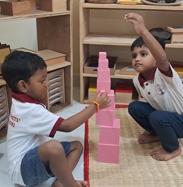 At Little Florets' Montessori, we are committed to holistic child development, nurturing children emotionally, physically, socially, morally, and intellectually. Inspired by Dr. Maria Montessori’s proven methodology, we provide a stimulating, child-centered environment guided by expertly trained Montessori educators. Through hands-on learning, exploration, and self-directed activities, we empower children to develop independence, problem-solving skills, and essential life skills, ensuring a strong start to their educational journey.