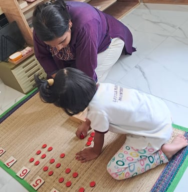 Mathematics isn’t about memorizing—it’s about understanding! Using hands-on materials, your child will explore numbers and learn math in a practical way. This fosters a love for learning, ensures a strong foundational understanding, and encourages critical thinking. Rather than memorizing, children learn the "why" behind math, leading to lasting comprehension and success.