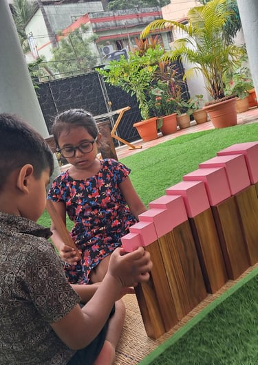 Our Sensorial activities are thoughtfully designed to help children refine their senses and deepen their understanding of the world. By engaging with hands-on materials that isolate individual sensory experiences—such as sound cylinders, color tablets, and geometric solids—children enhance their focus, coordination, and establish a solid foundation for future learning