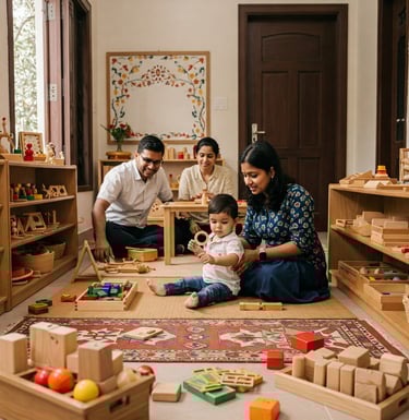 Regular updates and communication with parents ensure a seamless learning experience at school and home. Through home visits, our team provides guidance on setting up a Montessori-inspired play area at home, ensuring a structured and engaging environment for your child.