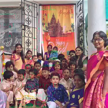 At Little Florets' Montessori, festivals are celebrated in a way that respects the children's daily routine and learning cycle. Our goal is to introduce children to cultural diversity in an inclusive and engaging manner. These celebrations are free from religious aspects. Through art, music, stories, traditional clothing, and food, children get to explore the richness of various cultures.